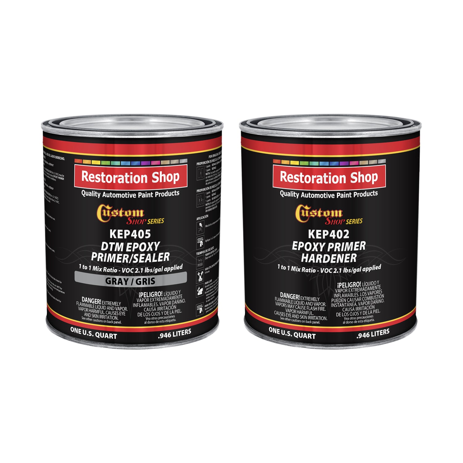CUSTOM SHOP KEP Series Anti-Corrosive Epoxy Primer / Sealer is a 1 to 1 Mix Ratio high performance primer specifically designed to be used DTM (Direct to Metal). KEP Series Primer contains an advanced resin technology system that offers superior adhesion to Bare Metal, Steel, Bare Aluminum, Fiberglass, Gelcoat. Body Fillers and most properly prepared Rigid Plastics and sanded OEM Finishes.