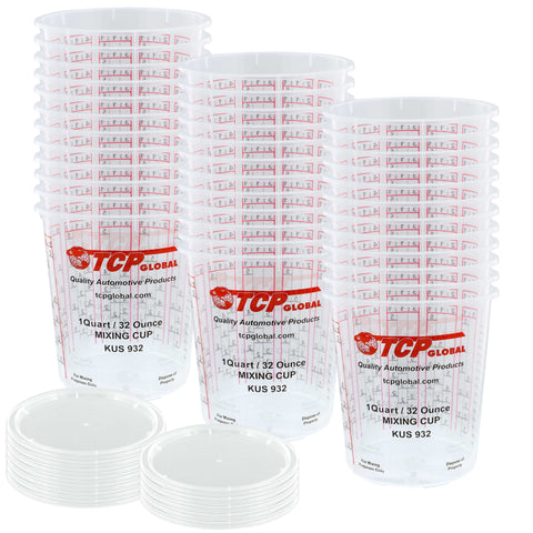 Paint Mixing Cups Plastic Measuring Cup Epoxy Resin, Disposable or Reusable, 32-Ounce (Quart) - Pack of 36 - Graduated, Mixing Ratios, Automotive Painting Acrylic Art Crafts